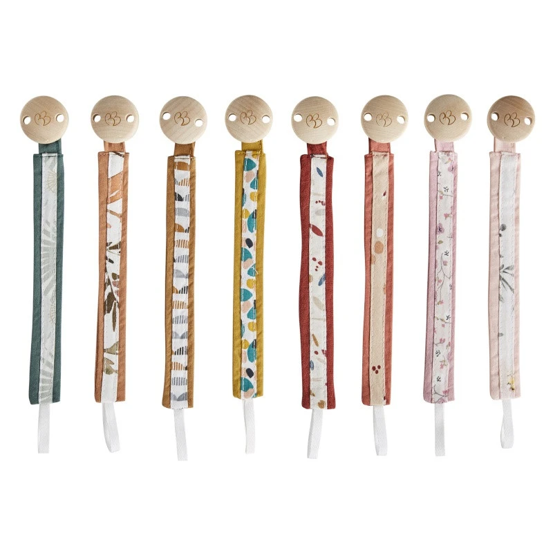 L’attache-sucette Caramel Forest de BB&Co est un accessoire très utile pour éviter de perdre ou de laisser tomber la sucette de votre bout de chou, et de déclencher un gros chagrin ! Simple à utiliser, cette bande de tissu dispose d’une boucle à une extrémité où accrocher le précieux objet, et d’une pince en bois naturel à l’autre bout qu’il suffit de clipser sur le vêtement de votre enfant.