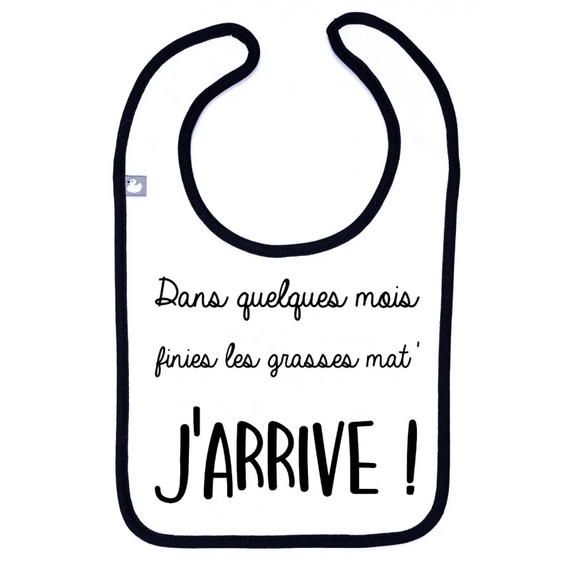 En effet, cette mystĂ©rieuse pochette-surprise de BB&Co contient… Un adorable bavoir au message explicite : « Dans quelques mois, finies les grasses mat’ j’arrive ».Â
