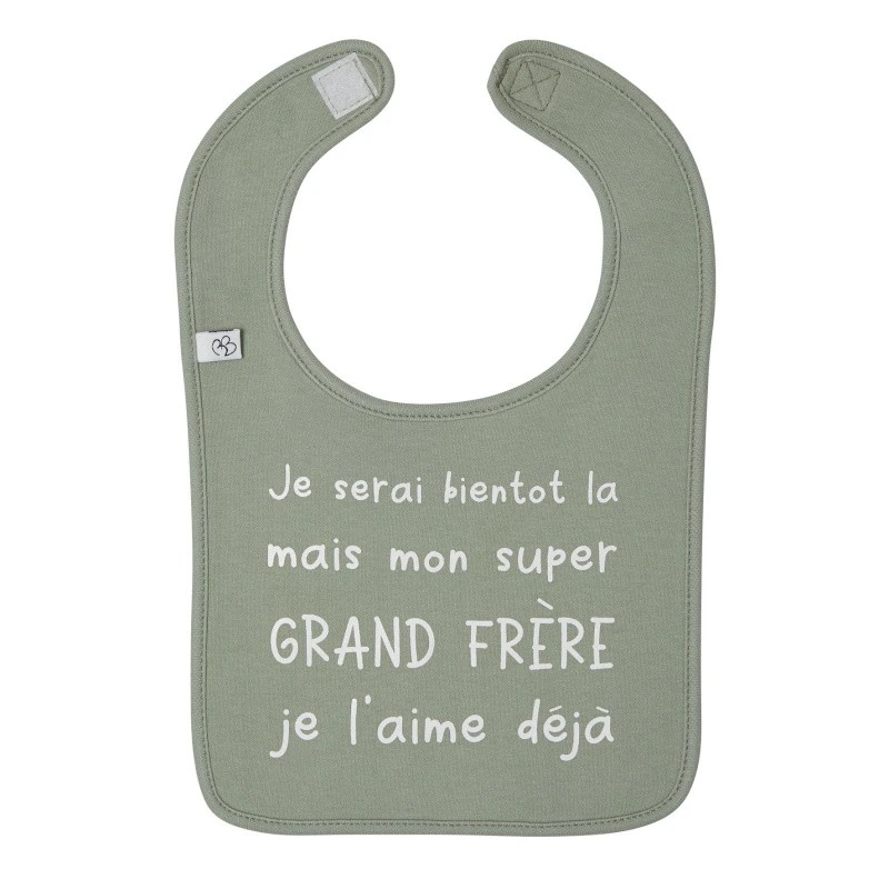 En effet, cette mystérieuse pochette-surprise de BB&Co contient… Un adorable bavoir au message explicite : « Je serai bientôt là mais mon super Grand frère je l’aime déjà ».
