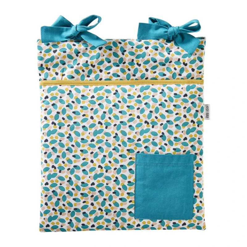 Le range-pyjama et doudous BB&Co Baby Pop s’accroche simplement au bord du lit de bébé à l’aide de petits liens. Il est réalisé dans un joli coton ouatiné, imprimé de motifs aux couleurs acidulées, et mis en valeur par les nouettes ou la poche turquoise.